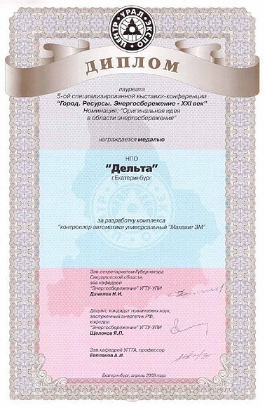 Контроллер автоматики"Малахит 3М" удостоен следующих наград: